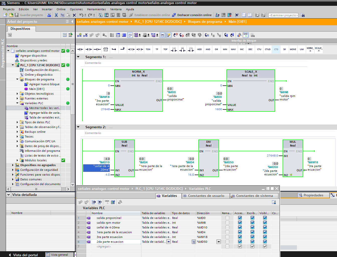Este Proyecto se trata de un código o programa que simula un control proporcional en lazo abierto, en este caso de un motor que va a estar trabajando de 0 - 1600 RPM, controlado por una señal de 4 - 20 mA, simulando con diferentes valores en miliamperios en la entrada de señal.